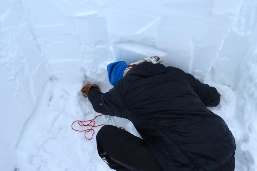 There was a somewhat fluffy layer on top, from the snowfall in early January. Below that, there was a roughly three-foot-deep layer that was more compact, from the late December storm.