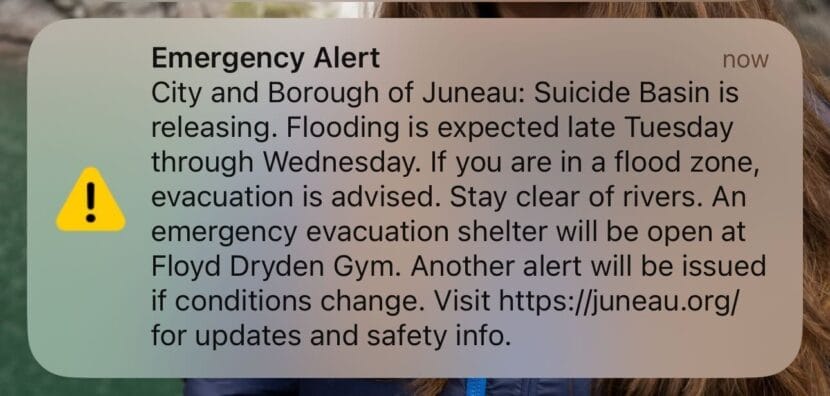 The City and Borough of Juneau issued an emergency alert via text that told residents in the flood zone that “evacuation is advised. Stay clear of rivers.”