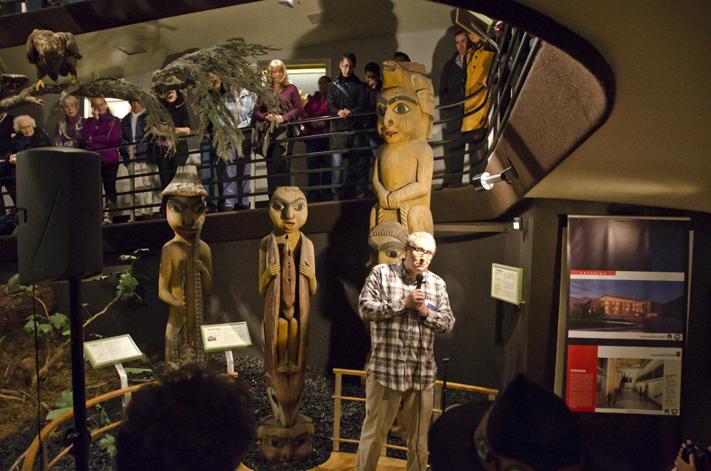 Wednesday’s cold rain in Juneau moved the groundbreaking inside. The museum was packed with state and local officials, including legislators and Juneau Assembly members, some who had their pictures taken with the special shovel in a trough of dirt near the museum’s landmark eagle tree.