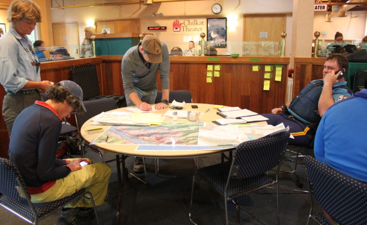 The search and rescue command center is located in the Mt. Roberts Tramway restaurant. James Dooley is with Juneau Mountain Rescue.