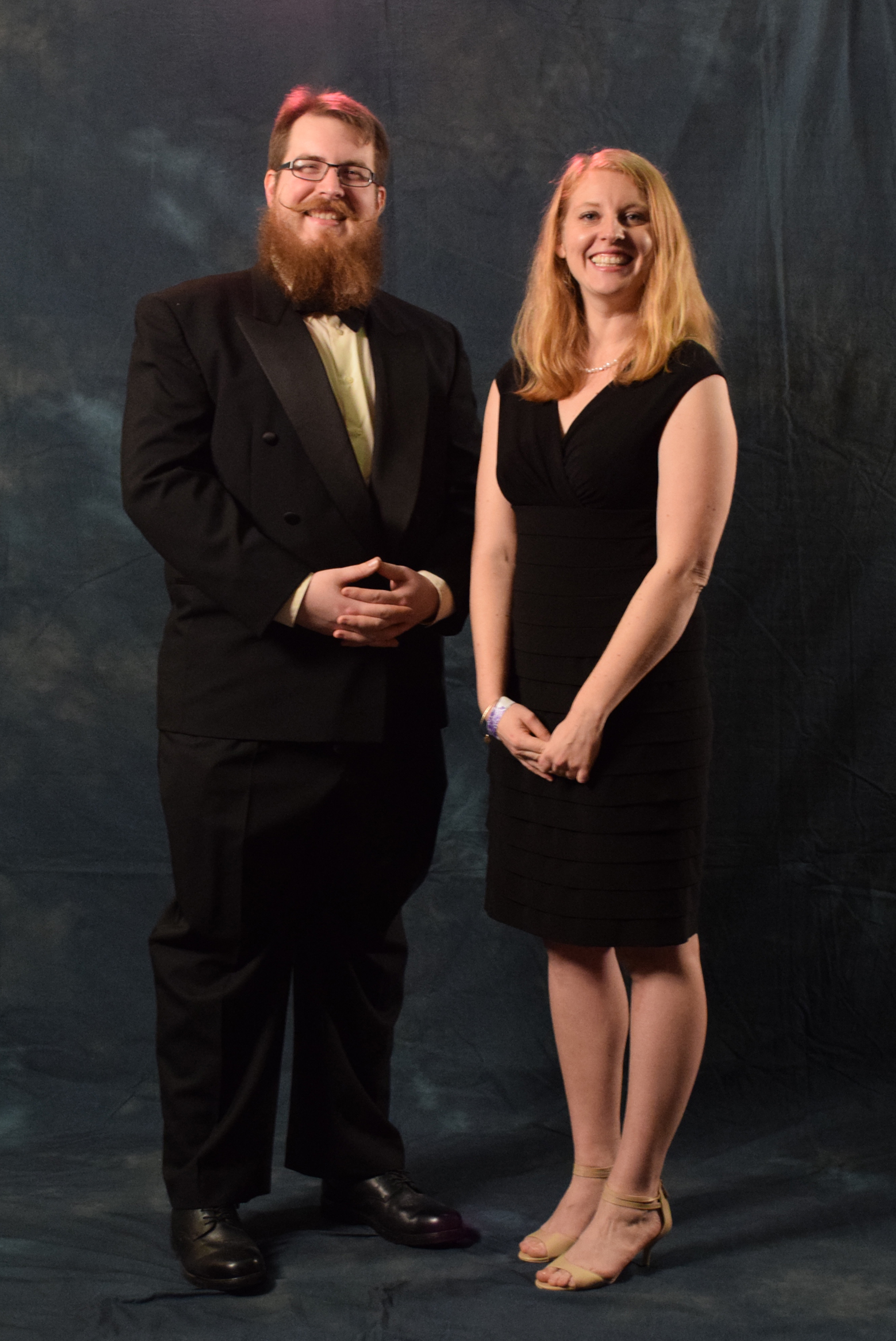 Sauerteig bought his jacket for $5 at a thrift shop in Philadelphia for his 25th high school reunion. McGee borrowed her dress from friend Rebecca Braun. Her earrings and raven bracelet are made by artist Donald Gregory. (Photo by Skip Gray/KTOO)