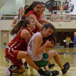 Hoonah’s Alice Johnson (5) secures a loose ball against Haines during the Women’s Bracket championship of the Juneau Lions Club 71st Annual Gold Medal Basketball Tournament at Juneau-Douglas High School on Saturday. Haines won 52-30. (Photo courtesy Klas Stolpe)