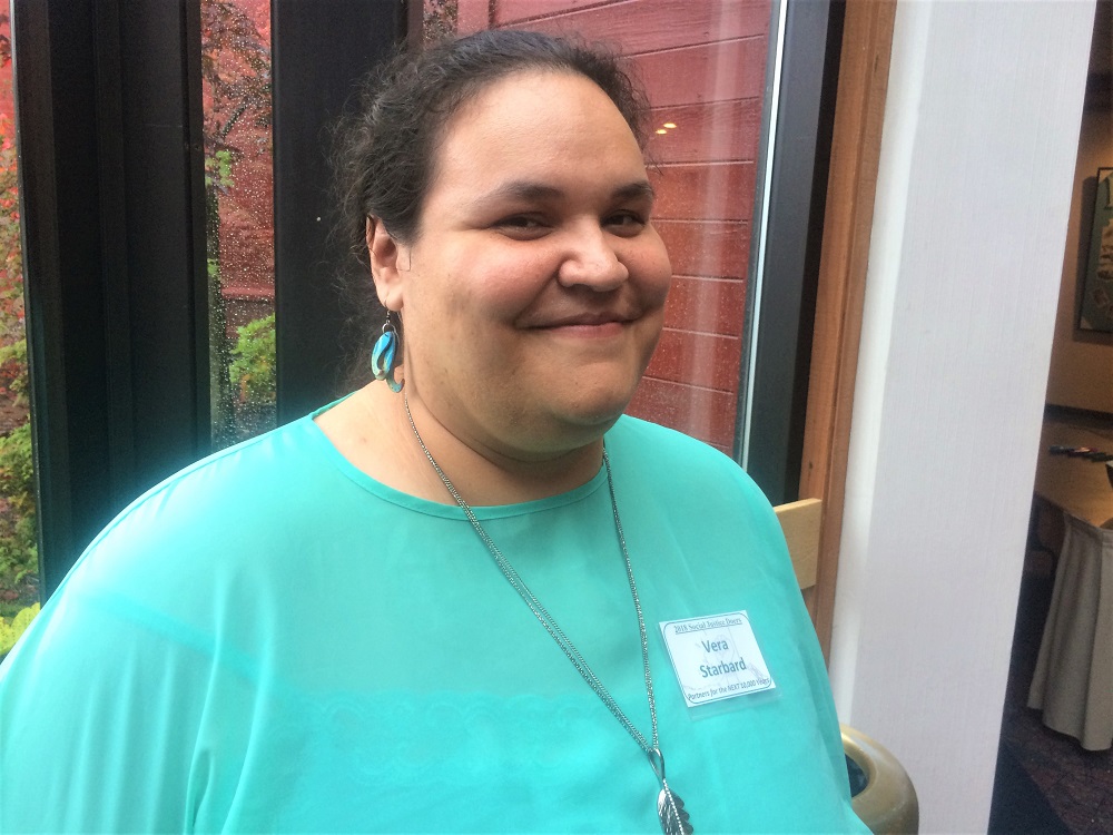 “I more often have it imposed on me as a Native writer of what I should be writing,” said Vera Starbard to a ballroom of 70 people at a recent social justice summit in Juneau. Starbard is an Anchorage-based playwright and writer who is Tlingit and Dena’ina.