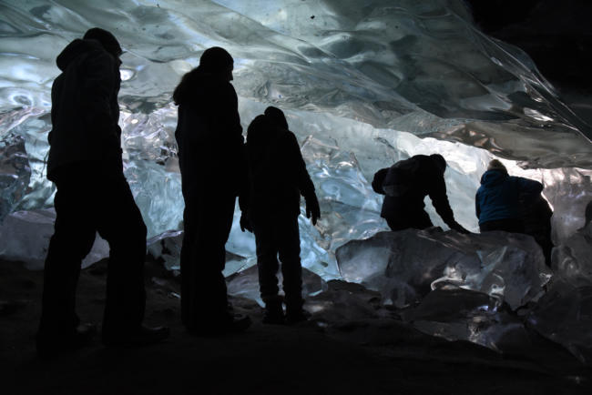 Although the famous blue caverns from several years ago have disappeared, word of a new cave spread over social media this winter and brought crowds of locals to the glacier.