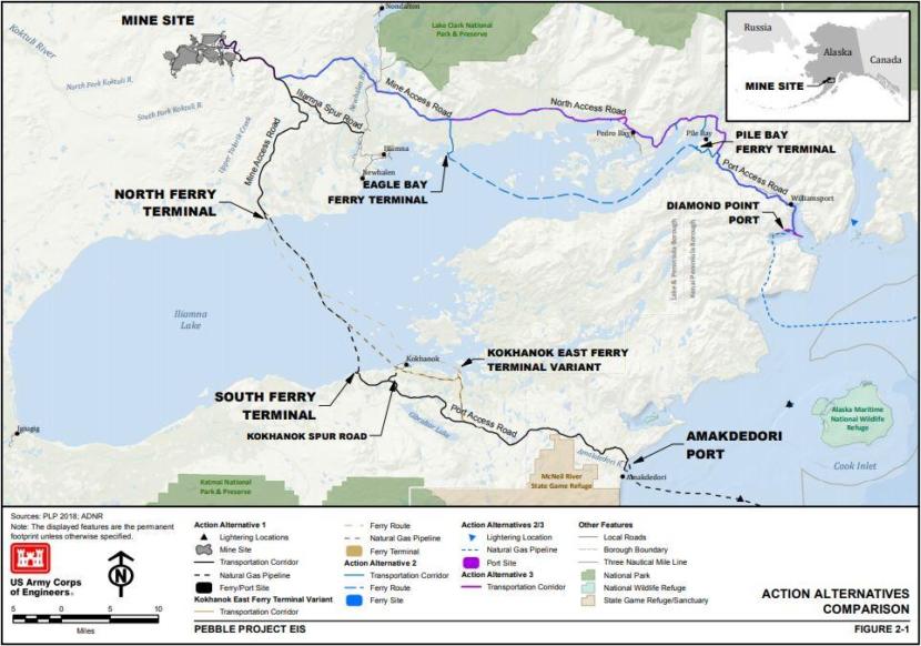 The agreement pertains mainly to alternative two of the Army Corps of Engineers’ draft environmental impact statement. Under that option, a road from the mine site would run along the north shore of Iliamna Lake to Eagle Bay, where the company would build a ferry terminal. A ferry would transport materials between Eagle Bay and Pile Bay. If the Army Corps determines that that is the best option, Pebble will need access to those lands to develop and operate the mine.