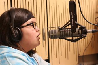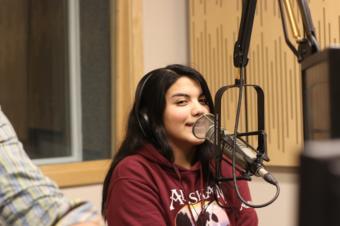 Nadia Wilson in the KTOO Studio (photo by Kendra Parks/IAK)