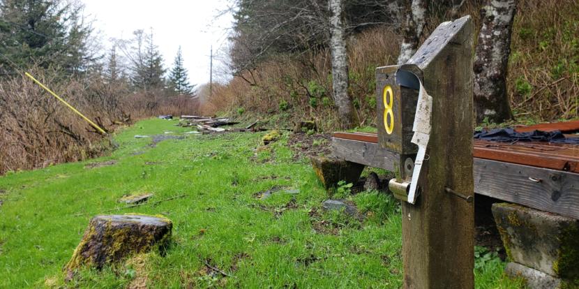 This new campground is a little under a mile from downtown Juneau. It’s on the side of Mount Roberts in a power line corridor. Beyond this tidy clearing, there are some ruins of the old AJ Gold Mine, and a lot of alder trees.