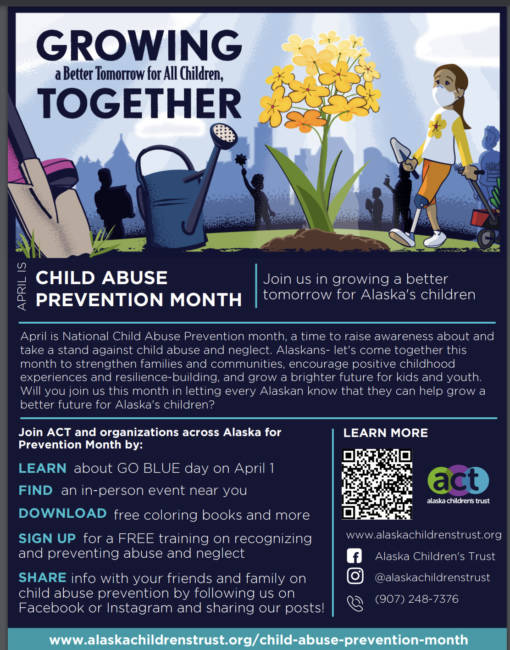 That’s one Juneau group’s message to raise awareness about child abuse during National Child Abuse Prevention month in April, which will launch with “Go Blue Day” on Friday, April 1st. On that day, the Juneau’s SAFE Child Advocacy Center is encouraging everyone to wear blue, the official color of prevention, to call attention to the thousands of children in Alaska who face abuse and neglect.