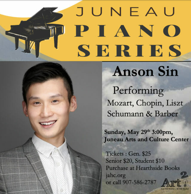 Critics describe Anson Sin’s piano playing as intimate yet technically crisp and clean. He is one of several pianists that Jon Hays, artistic director for the Juneau Piano Concert Series,  has identified as an up and coming artist. Sin is currently pursuing his doctorate of Musical Arts in Piano Performance at the University of Oregon.
