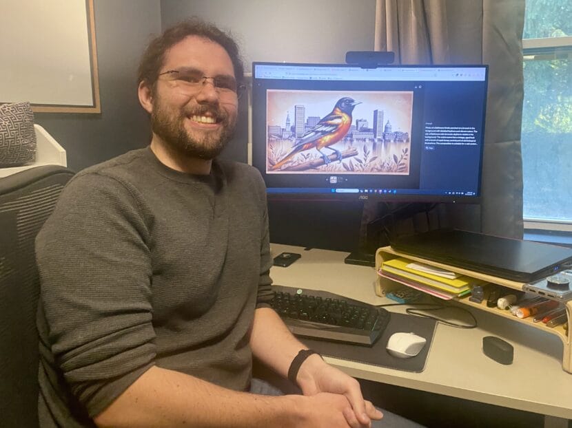 The program delivered a fairly sophisticated image of an oriole in front of a Baltimore skyline, but there were a few problems. Garcia’s wife, a biologist, found extra toes on the bird’s feet. The skyline did include a few recognizable landmarks but wouldn’t hold up for anyone who knows the city.
