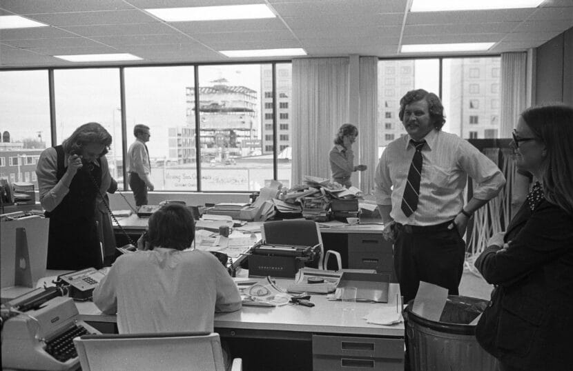 He wanted us to go out and, you know, pick up the rocks and see what was underneath them. He wanted us to challenge the institutions and just do really good newspaper work. There was no sense of, “Oh, I better not do that or my boss might be upset.” It’d be more likely that the boss would be upset if you backed away from something that needed scrutiny. So, you know, he was just an inspiring leader through that period. He had this vision of the community newspaper as a tribal fire that the whole community could gather around and tell stories and share stories and develop a kind of common sense of who we are.