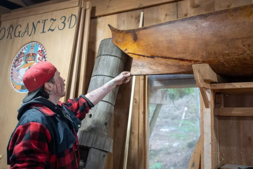 “It’s pretty exciting to be going on this journey for the first time in our own canoes from our own community and meeting up with a lot of other communities on the way,” Hamar said as he worked. “I think, hopefully, it’ll bring a lot of inspiration to the people and hopefully get some folks excited about maintaining the traditions.”