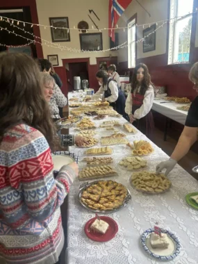 Days later, the dainty desserts reappeared in the Sons of Norway Hall, arranged on long buffet tables. A line of hungry festival-goers stretched around the outside the building, in the rain. But Bob Martin, who had been standing there for around 45 minutes, said it was all worth it.