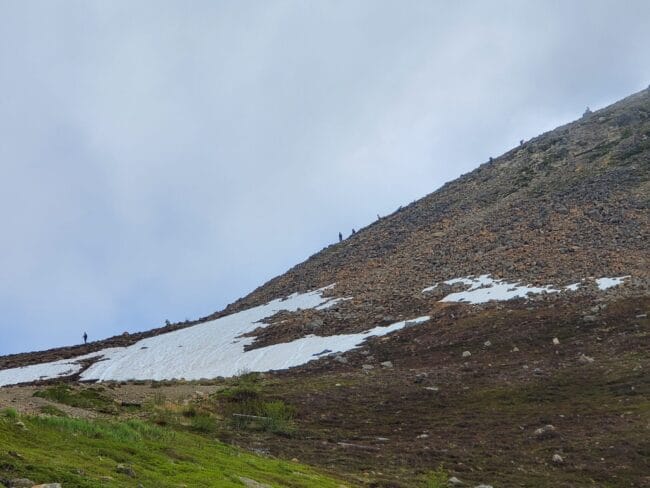 Hikers ascend Anchorage’s Flattop Mountain on June 17. This is a section of the mountain where the trail has eroded, causing conditions that are dangerous for some hikers. (Photo by Yereth Rosen)