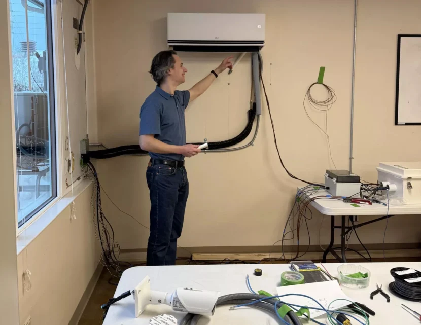 “We have now a test going on with an LG heat pump … that can go down to 30-, 40-below, and still produce 70 degrees inside the house,” Mathiasson said, referring to temperatures measured in degrees Fahrenheit. “And we’re gonna test one of those here through the rest of the winter. We’re installing it pretty quick here, and there’s also one in Fairbanks that’s being installed over there by NREL.