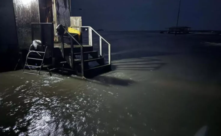 Wind gusts as high as 55 miles per hour pushed waters well above the normal high tide line.
