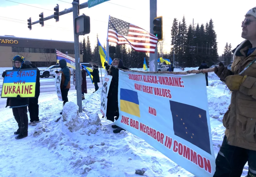 A couple dozen Fairbanksans sang songs and rallied on a main street corner this week, in an impromptu protest marking three years since Russia’s invasion of Ukraine.