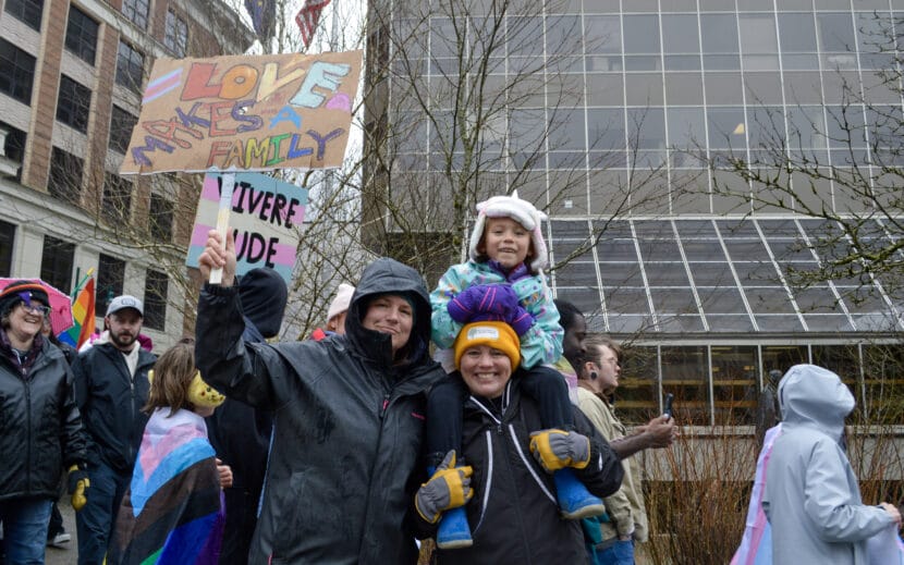 Members of Juneau’s LGBTQ+ community and the people who support them gathered in droves over the weekend to protest the Trump administration’s policies and language surrounding queer and trans people.