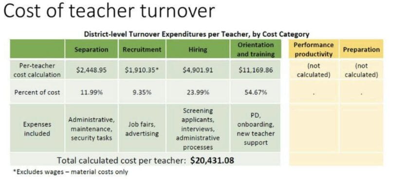 Rucksdashel cited research from the University of Alaska Anchorage Institute of Social and Economic Research that estimates the turnover cost per teacher at over $20,000, including costs for recruitment, hiring and training.