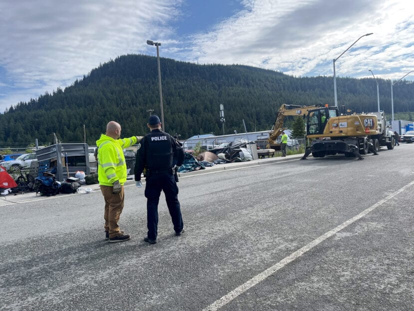 On Tuesday morning, four days after Juneau police posted notices, officers came to clear the encampment, accompanied by heavy machinery.