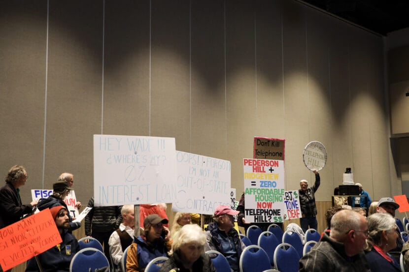 On Monday, dozens of residents attended the Juneau Assembly meeting to protest the city’s plans to evict residents. The Assembly could have chosen to rescind the eviction notices sent to residents at the meeting, but it did not do that.