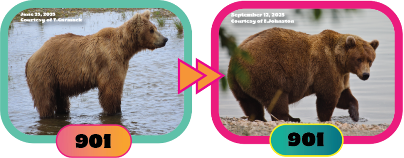 Look, 901 is an actual boat. She’s so wide, I don’t know how she turns a corner. She is the Michelin man in a bear suit. She is a runaway parade blimp. What we love about 901 is that she has always had her priorities straight – eat, mate, and sleep – and her prodigious peach is proof that she’s a very focused gorl. 901 gave us a historical upset several years ago: it was her first time on the bracket when she ousted King 480 Otis. She made it all the way to the finals, coming in 2nd to 747 Bear Force One.