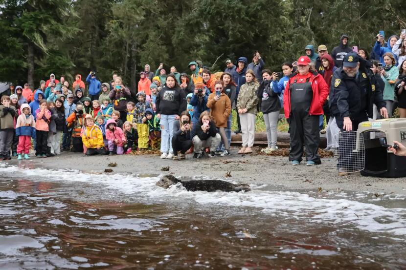 After several weeks of treatment at the Alaska SeaLife Center in Seward, that seal returned home on Oct. 23. Over a hundred people gathered at Sandy Beach to see the nearly five-month-old Bravo get released back into the wild.