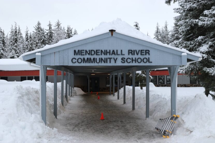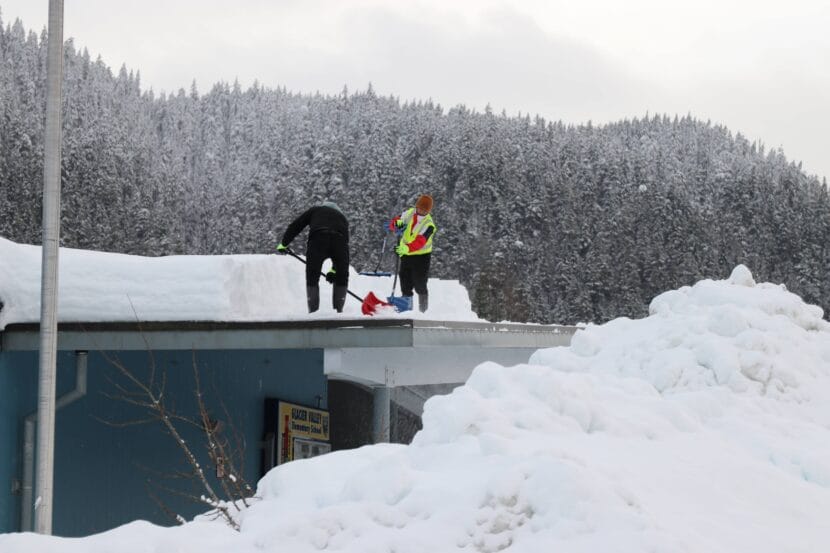 Crews will start clearing snow from the roof of Mendenhall River school Friday. While the building is closed, the school will offer remote learning.