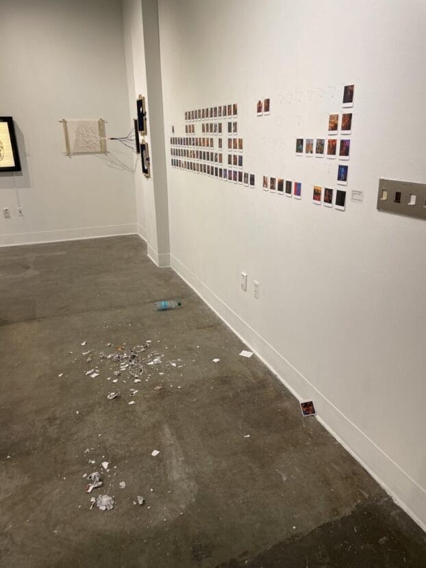 LH: He was upset, and rightfully so. This was his MFA exhibit. It’s hard to see your art destroyed like this. He had put a lot of time and effort into this. He wanted to press charges, and he had begun to press charges. But then the next day, things had kind of cooled down, he had talked to some of the art professors, and had realized that pressing charges maybe wouldn’t be the best idea.
