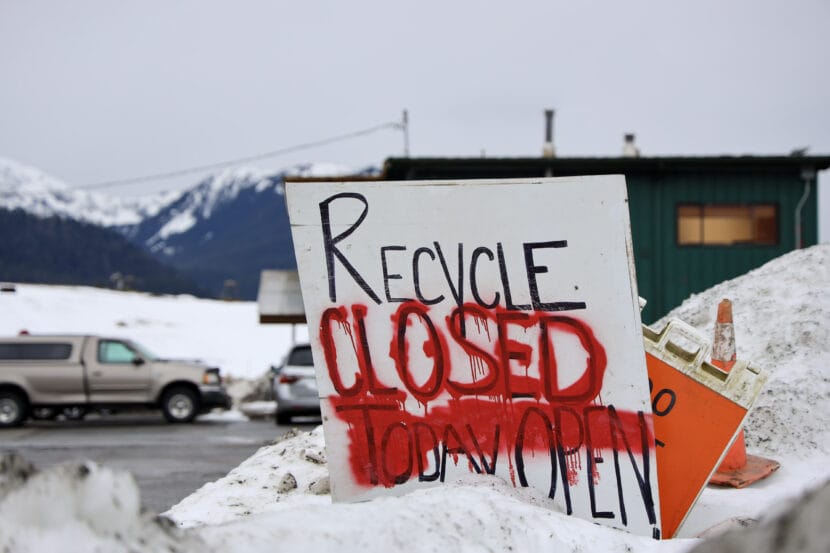 The city contracts with Waste Management — the private company that runs the landfill — to operate its recycling program in Lemon Creek. The center has been closed on and off since late December, after Juneau was hit with back-to-back record-breaking snowstorms. That inundated the open-air warehouse with a backlog of materials to process.
