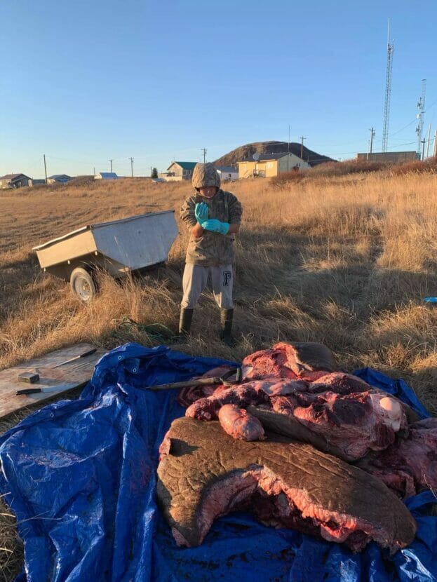 After a successful hunt, the crew will bring the meat back to the village, where it can feed people all year. “We help each other and cut it up into smaller pieces. So we could distribute first of all to the elders, and to the folks that can no longer hunt,” said Lockuk.