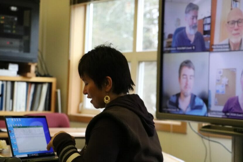 At last May’s Qayassiq Walrus Commission meeting at the Bristol Bay Native Association in Dillingham, commissioners gathered around a conference room table near a large screen that displayed the names of the co-management partners. At the far end of the room was a Ziplock bag of herring eggs on kelp that someone had brought from Togiak. A hunter had supplied fresh beluga muktuk, and there was also soy sauce, crackers and salmon dip.