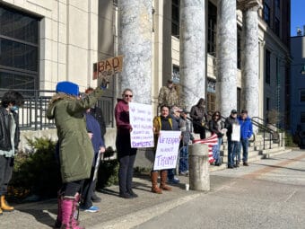 Demonstrators in Juneau decry federal Veterans Affairs layoffs