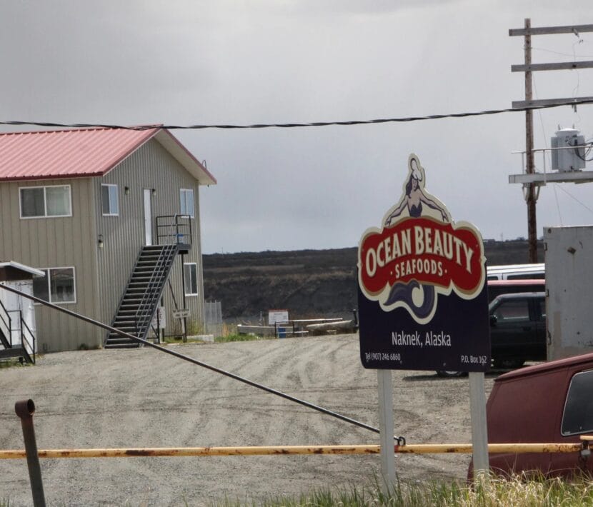 An Ocean Beauty Seafoods sign in Naknek. (File/KDLG)